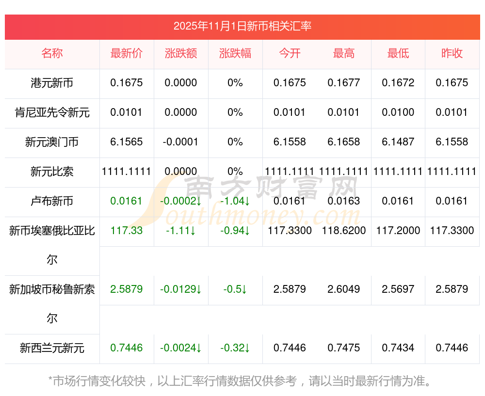 2025年11月1日新幣相關(guān)匯率查詢