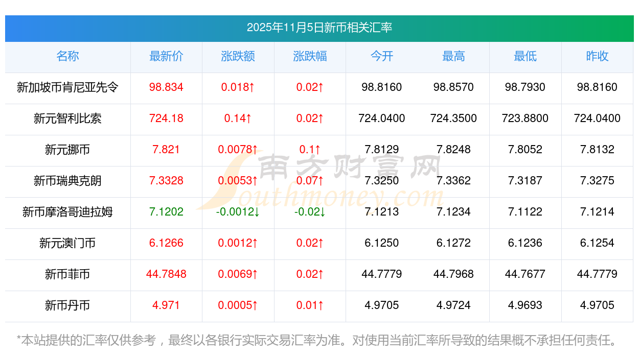 根據(jù)2025年11月5日匯率,新幣兌換哥倫比亞比索匯率最新2949.410000,今開2956.4300,昨收2956.4300,最高2956.7600,最低2948.8500。