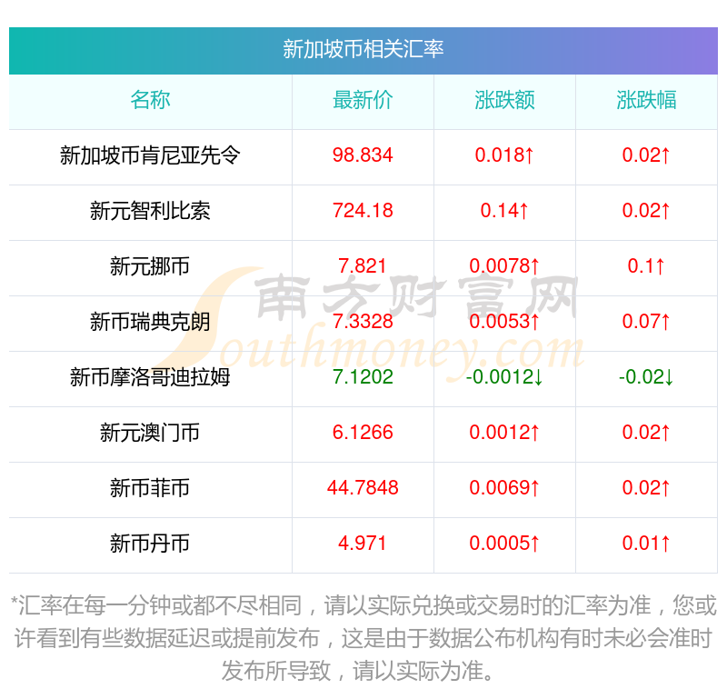 匯率在每一分鐘或都不盡相同,請以實(shí)際兌換或交易時的匯率為準(zhǔn),您或許看到有些數(shù)據(jù)延遲或提前發(fā)布,這是由于數(shù)據(jù)公布機(jī)構(gòu)有時未必會準(zhǔn)時發(fā)布所導(dǎo)致,請以實(shí)際為準(zhǔn)。