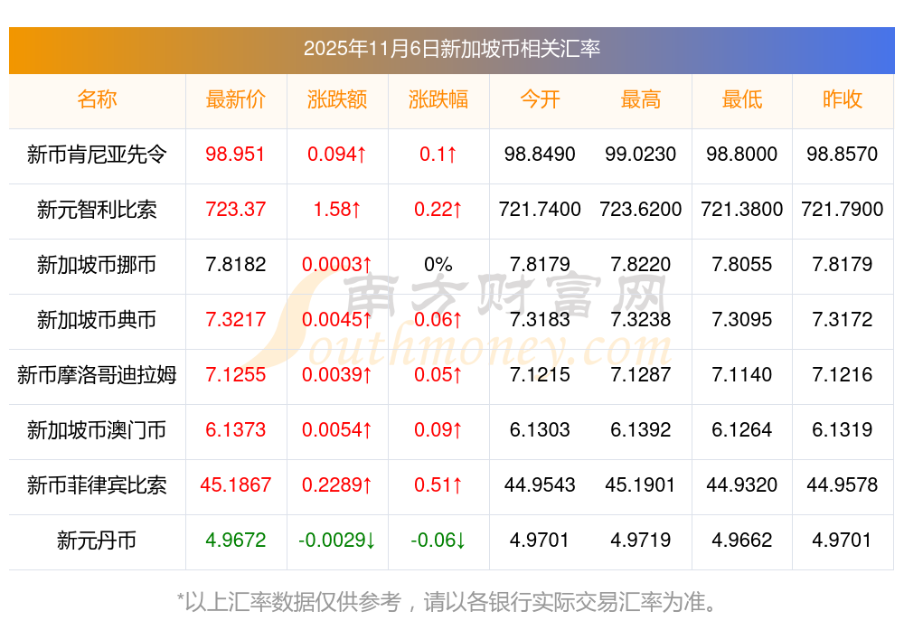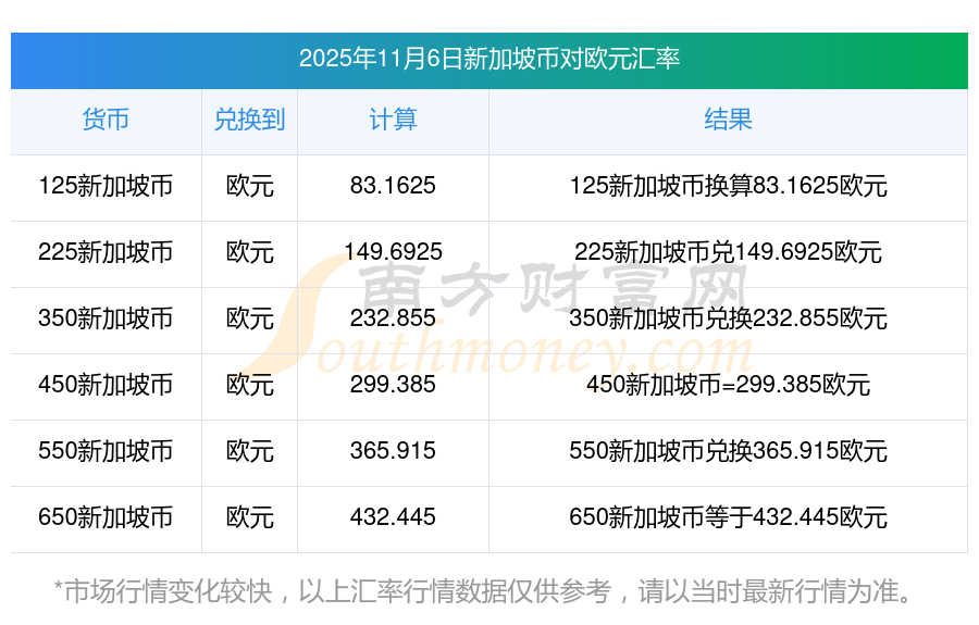 今日實(shí)時(shí)匯率_今天新加坡幣換歐元匯率計(jì)算表2025/11/06