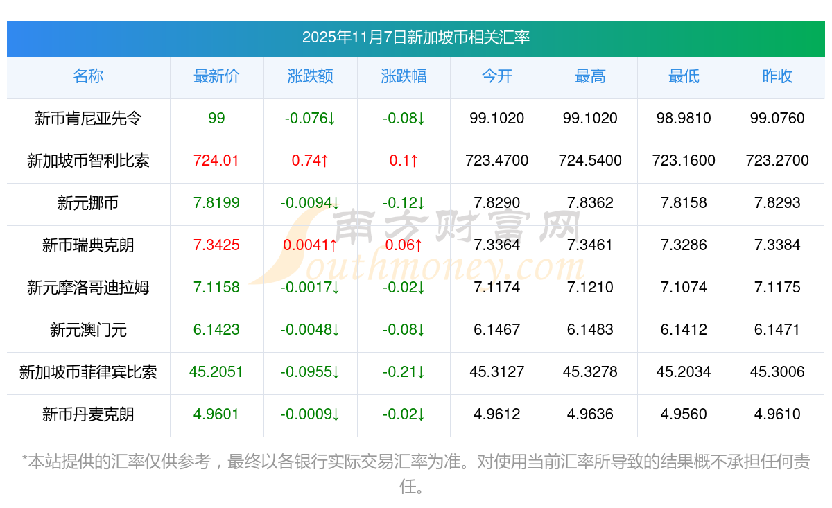 2025年11月7日新加坡幣相關(guān)匯率查詢