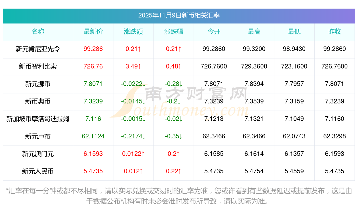 2025年11月9日新幣相關(guān)匯率查詢