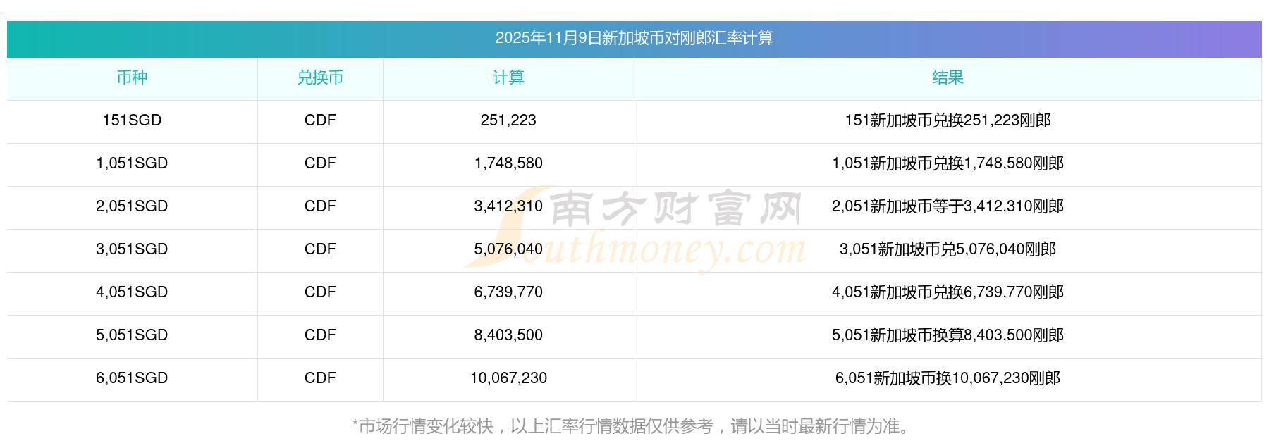 今日新加坡幣對(duì)剛郎匯率大概多少?2025/11/9匯率查詢