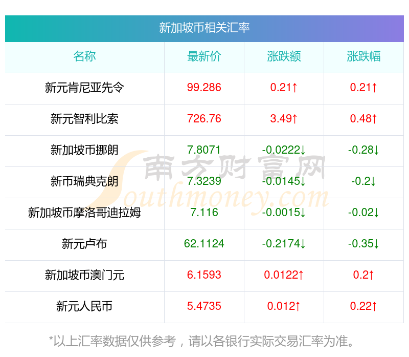 南方財(cái)富網(wǎng)為您提供新加坡幣對(duì)挪朗匯率最新價(jià)格詳情。