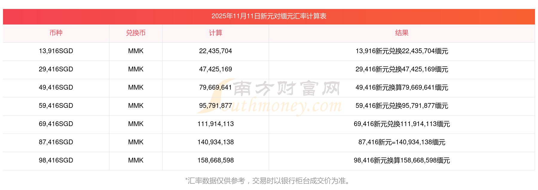 南方財(cái)富網(wǎng)為您提供新元兌換緬元匯率最新價(jià)格詳情。