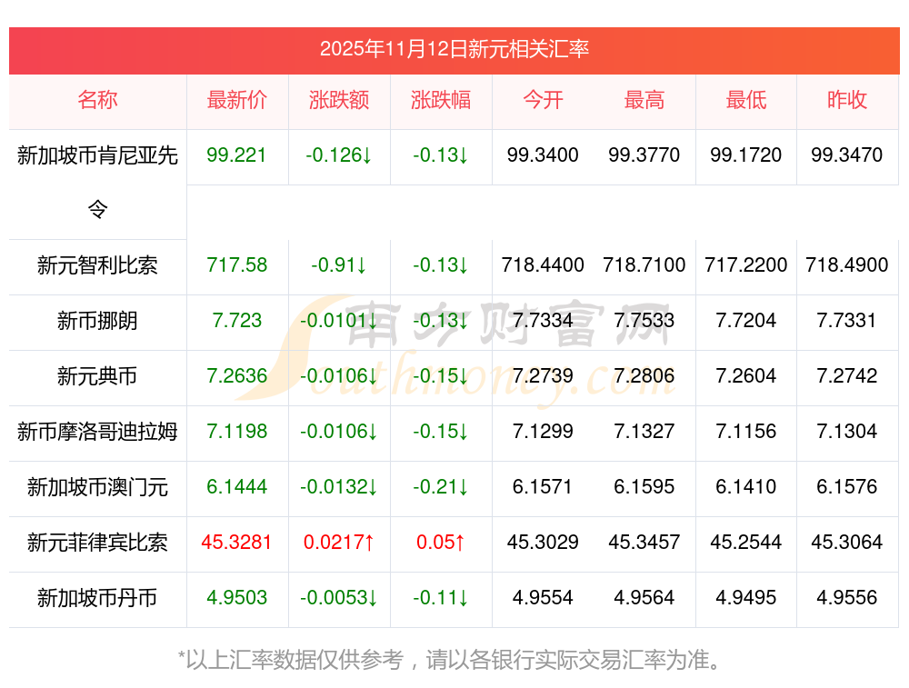 現(xiàn)46新元兌換菲律賓比索結(jié)匯行情 新元匯率報價查詢2025-11-12