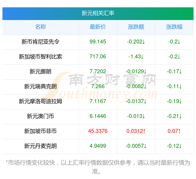 南方財富網(wǎng)為您提供新元對澳門幣匯率最新價格詳情。