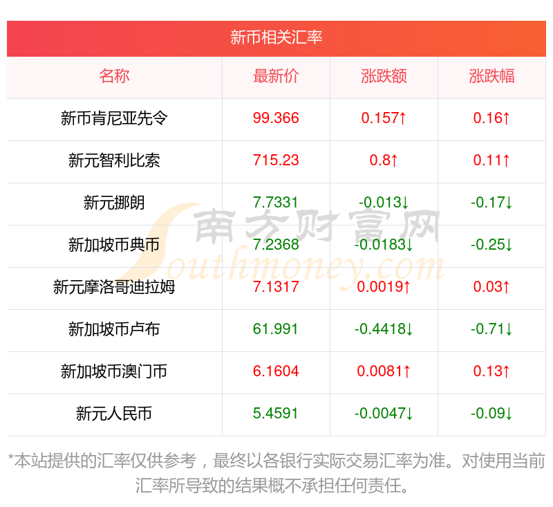 匯率在每一分鐘或都不盡相同,請以實際兌換或交易時的匯率為準,您或許看到有些數(shù)據(jù)延遲或提前發(fā)布,這是由于數(shù)據(jù)公布機構有時未必會準時發(fā)布所導致,請以實際為準。