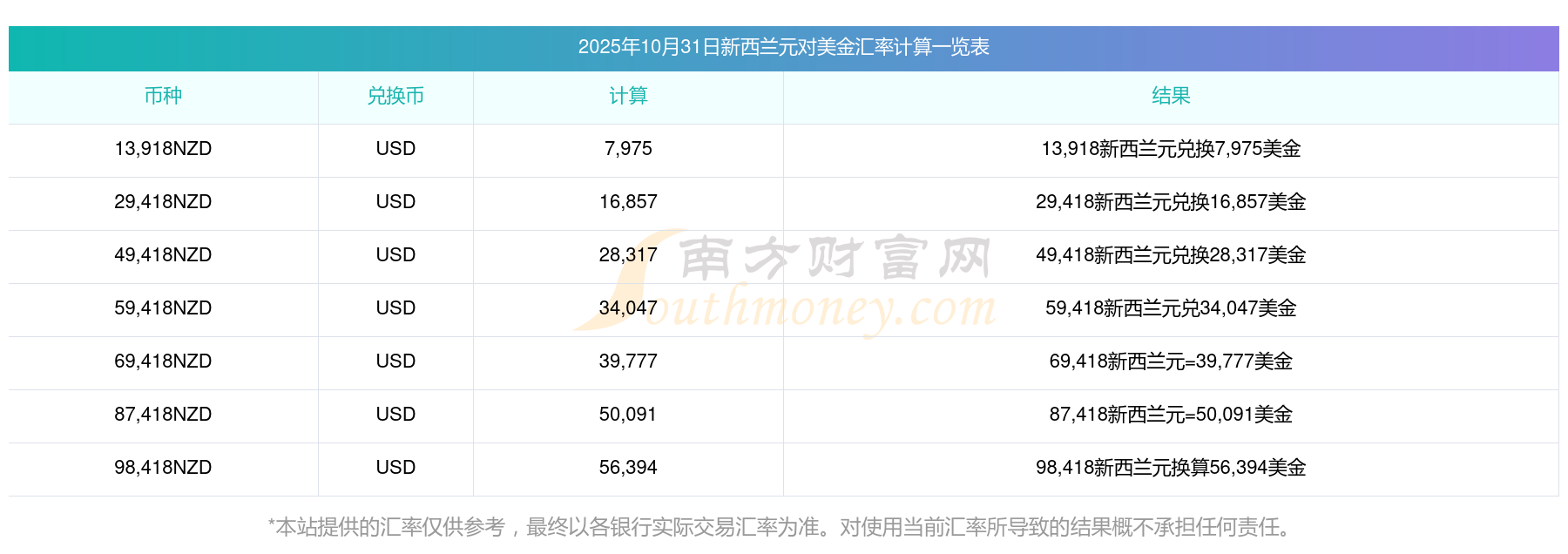 新西蘭元對美金折算價如何計算?中間價多少?10-31