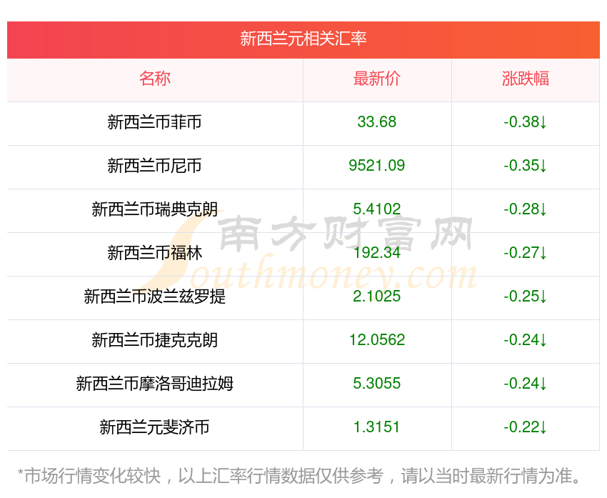 南方財富網(wǎng)為您提供新西蘭元對美金匯率最新價格詳情。