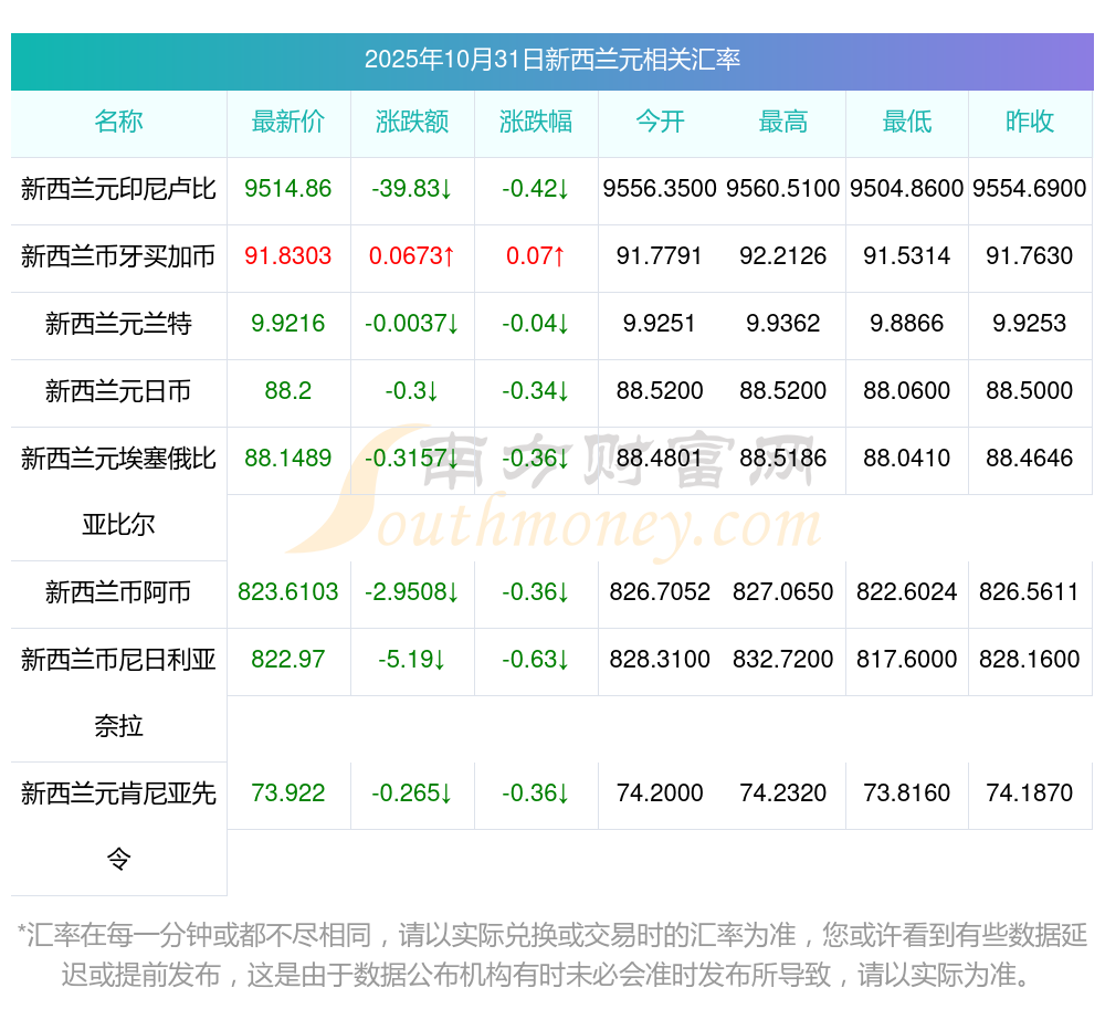 2025年10月31日新西蘭元相關(guān)匯率查詢