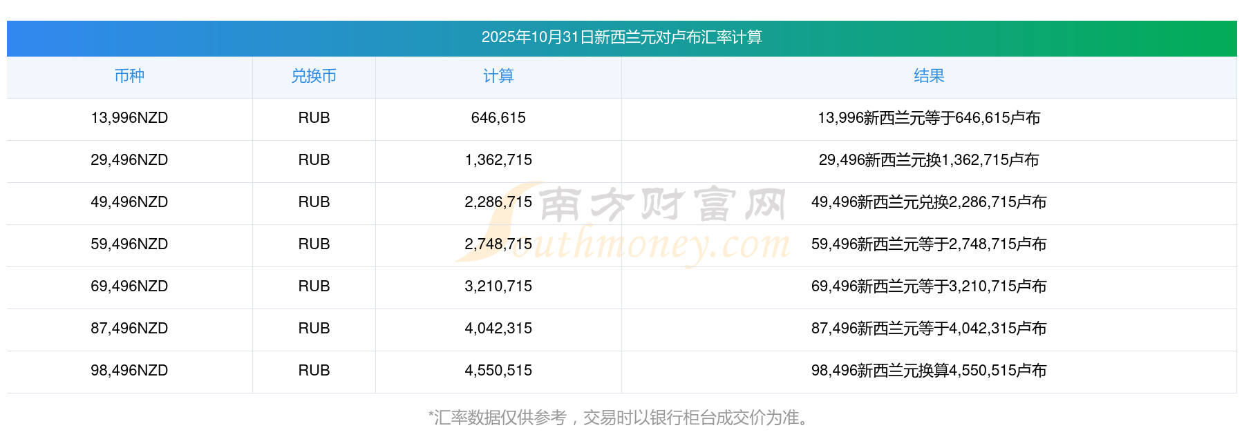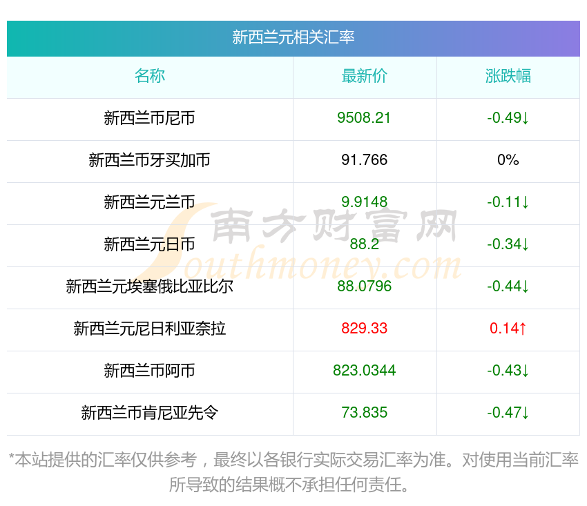 今日實時匯率_今天新西蘭元換盧布匯率計算表10-31