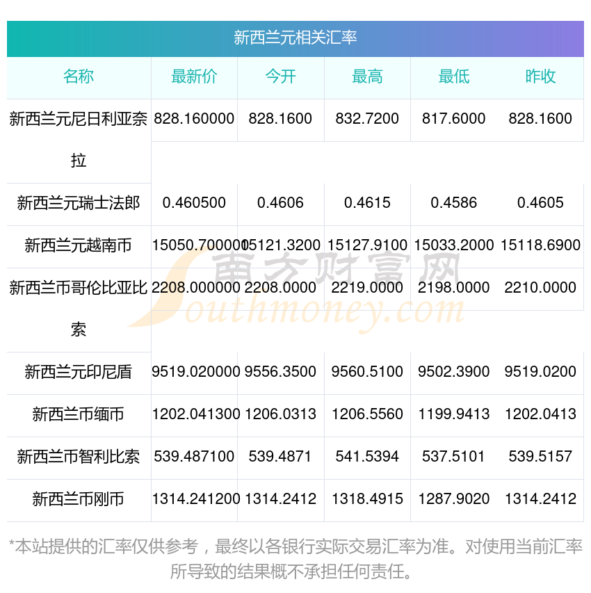 2025年11月1日新西蘭元相關(guān)匯率查詢