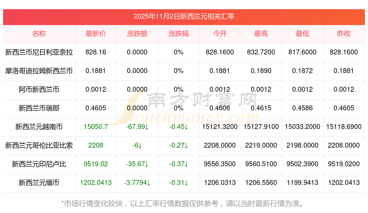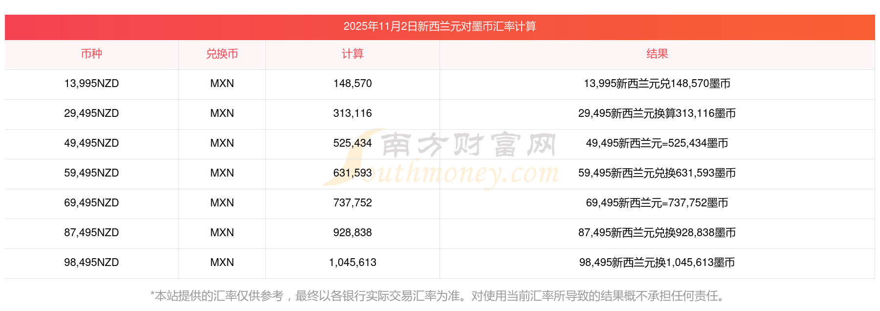 1 新西蘭元能兌換多少? 新西蘭元對(duì)墨幣今日匯率查詢 2025-11-02