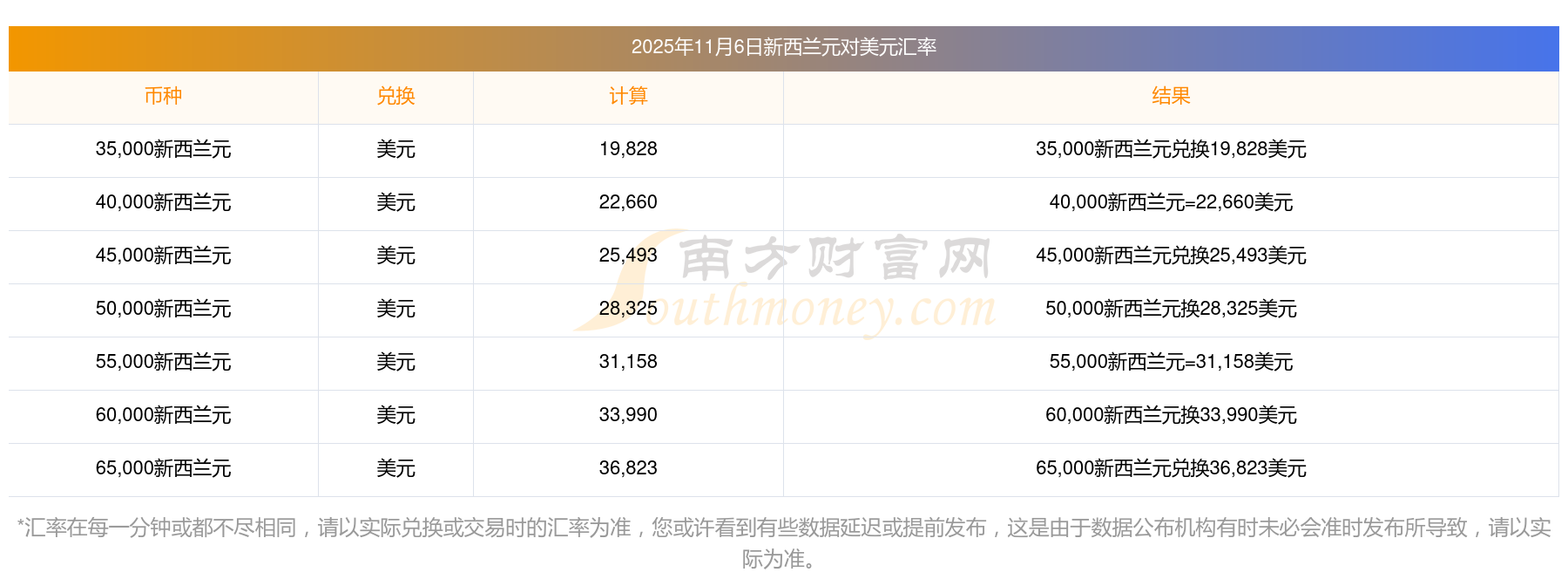 今天8兌換為 | 將新西蘭元轉(zhuǎn)換為美元是多少? 2025-11-6