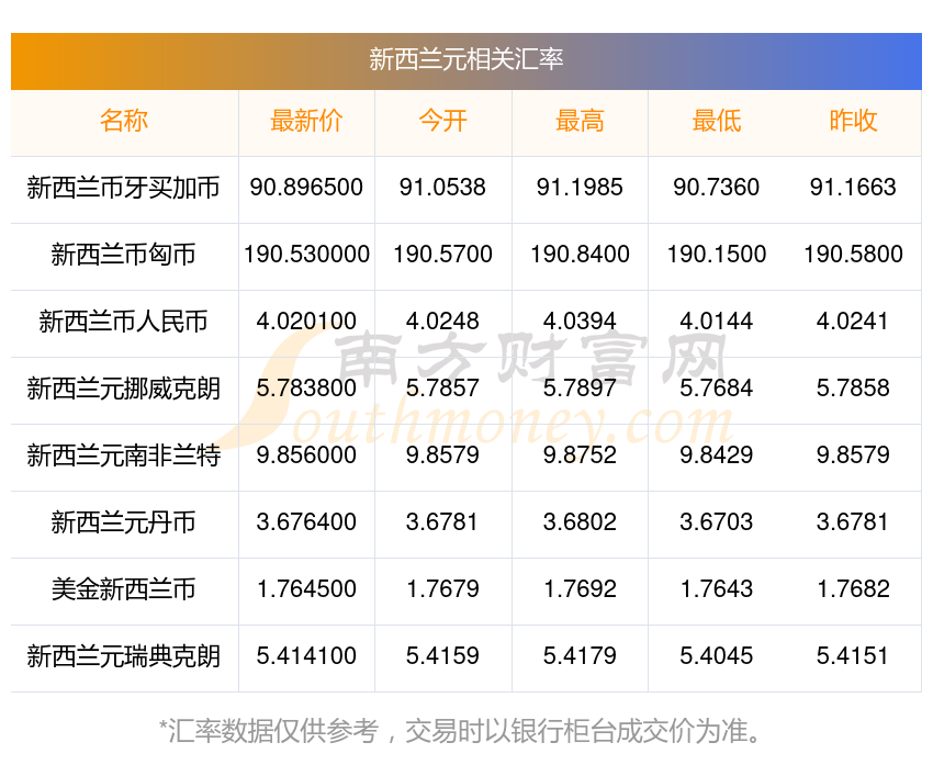 2025年11月6日新西蘭元相關(guān)匯率查詢