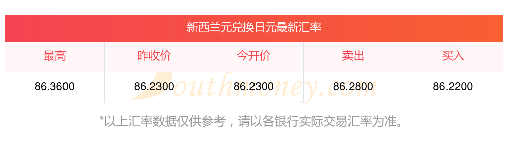 南方財(cái)富網(wǎng)為您提供新西蘭元對(duì)日元匯率最新價(jià)格詳情。