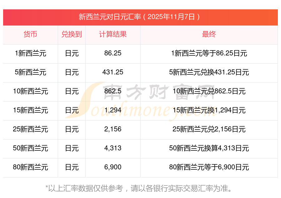 新西蘭元對(duì)日元的匯率今日一覽2025年11月7日