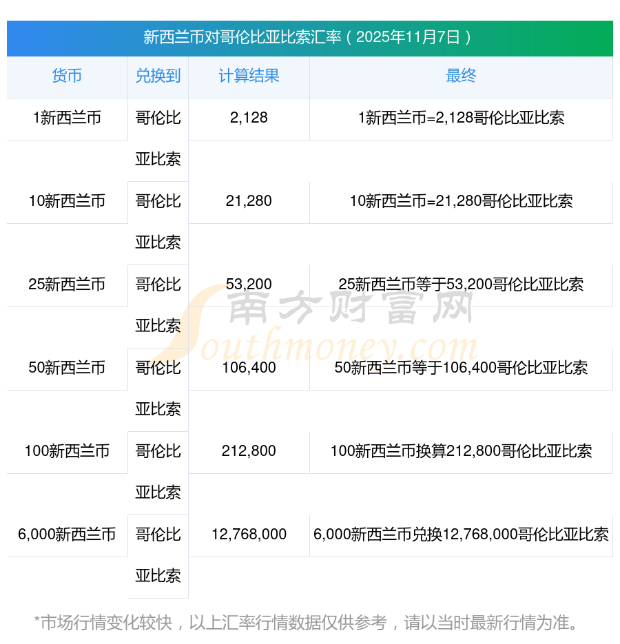 今天128新西蘭幣換多少哥倫比亞比索2025年11月7日