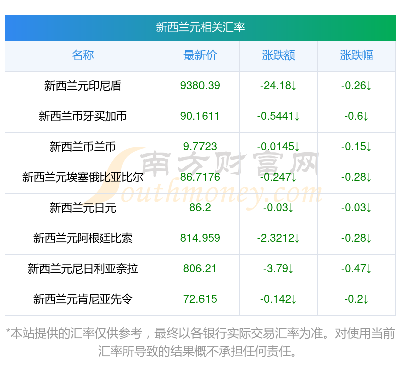 2025年11月7日新西蘭元相關(guān)匯率查詢