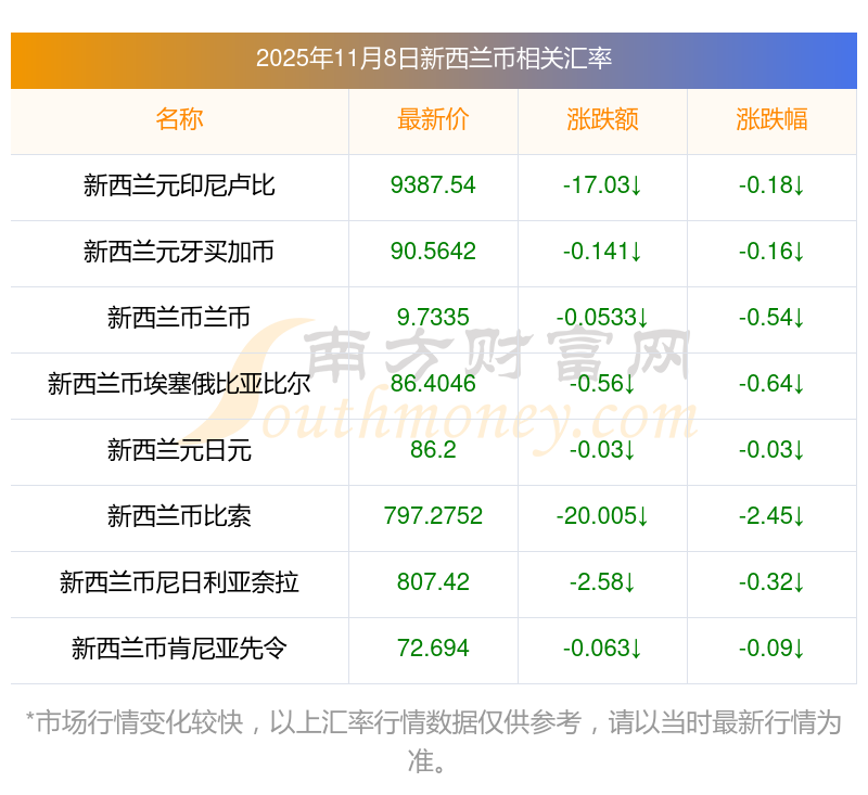 2025年11月8日新西蘭幣相關(guān)匯率查詢