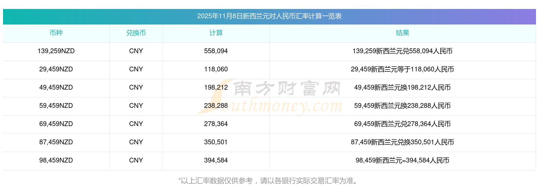 今天匯率新消息:新西蘭元對人民幣匯率多少?11月8日