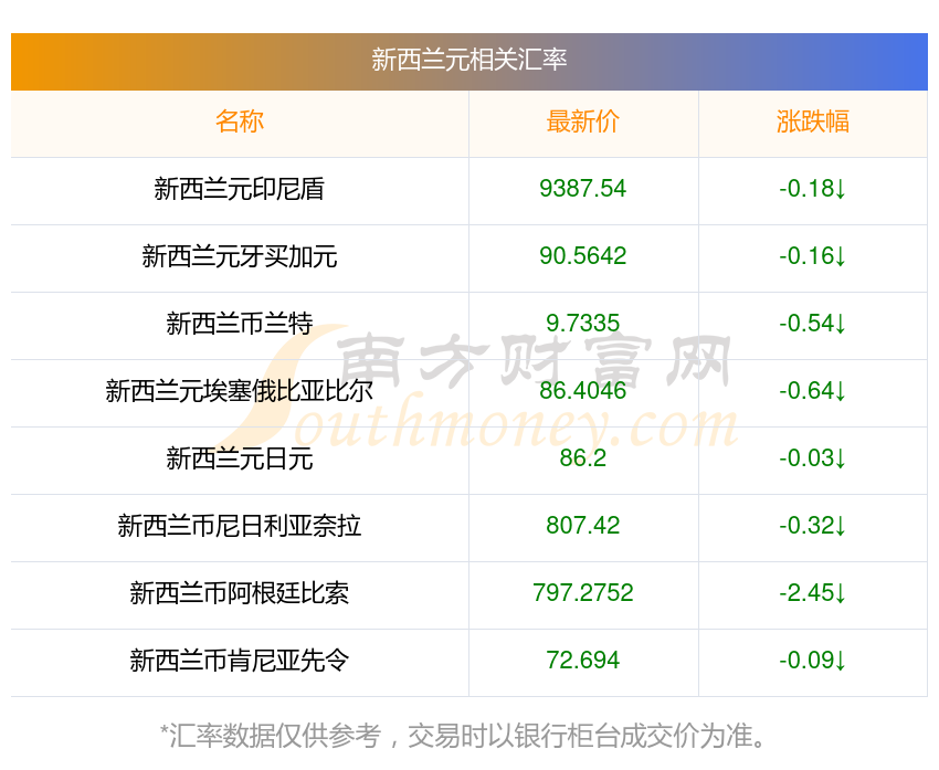 南方財(cái)富網(wǎng)為您提供新西蘭元對(duì)印尼盾匯率最新價(jià)格詳情。