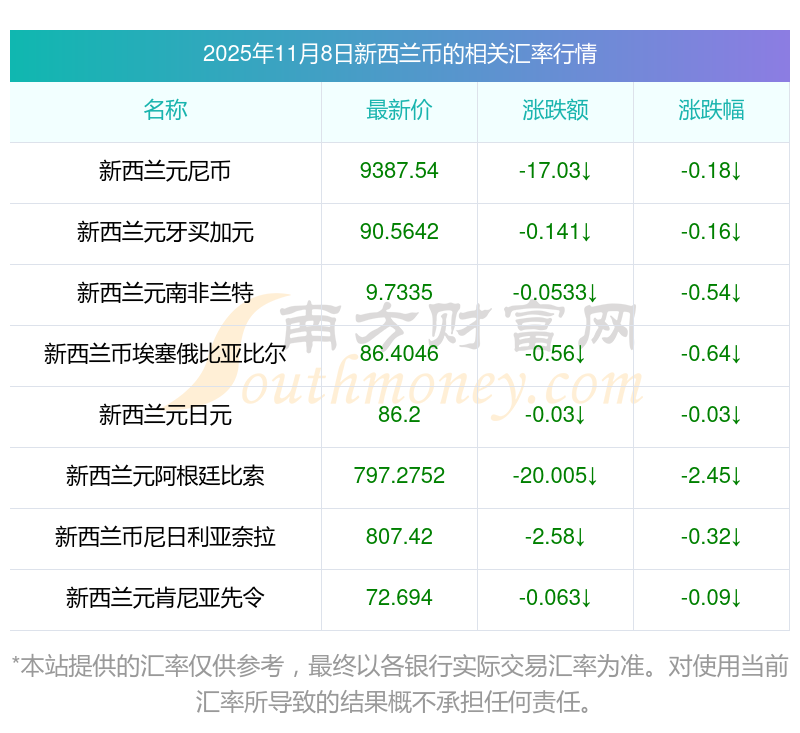 2025年11月8日新西蘭幣相關(guān)匯率查詢