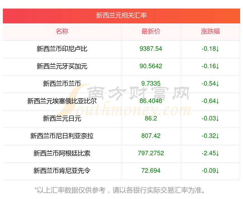 2025年11月9日新西蘭元相關(guān)匯率查詢