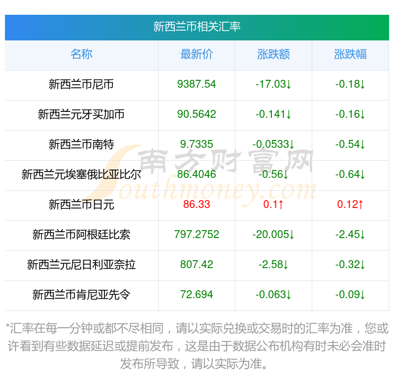 2025年11月9日新西蘭幣相關(guān)匯率查詢