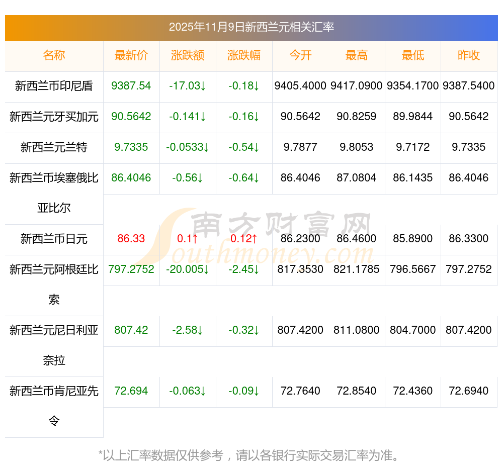 今天新西蘭元141換成摩洛哥迪拉姆匯率一覽?2025年11月9日