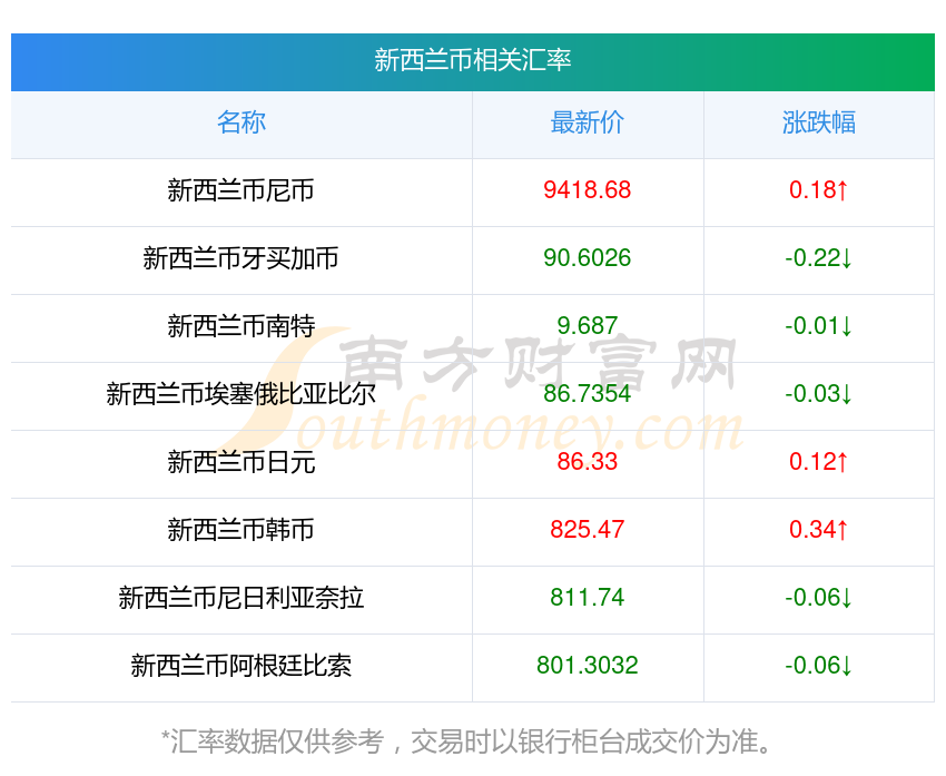 2025年11月11日新西蘭幣相關(guān)匯率查詢
