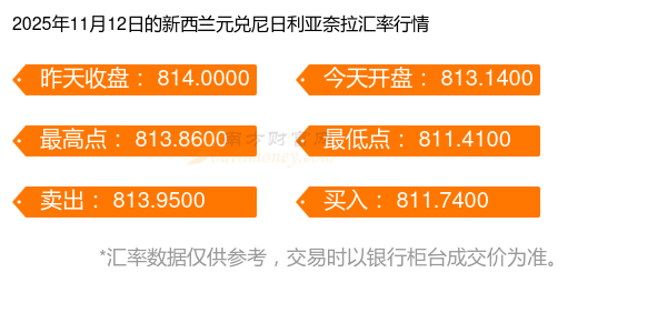 今日新西蘭元匯價(jià):2025年11月12日39新西蘭元兌尼日利亞奈拉匯價(jià)一覽表