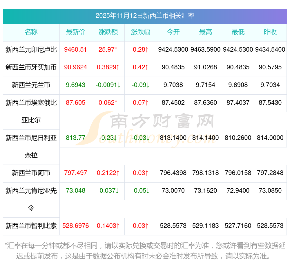 2025年11月12日新西蘭幣相關(guān)匯率查詢