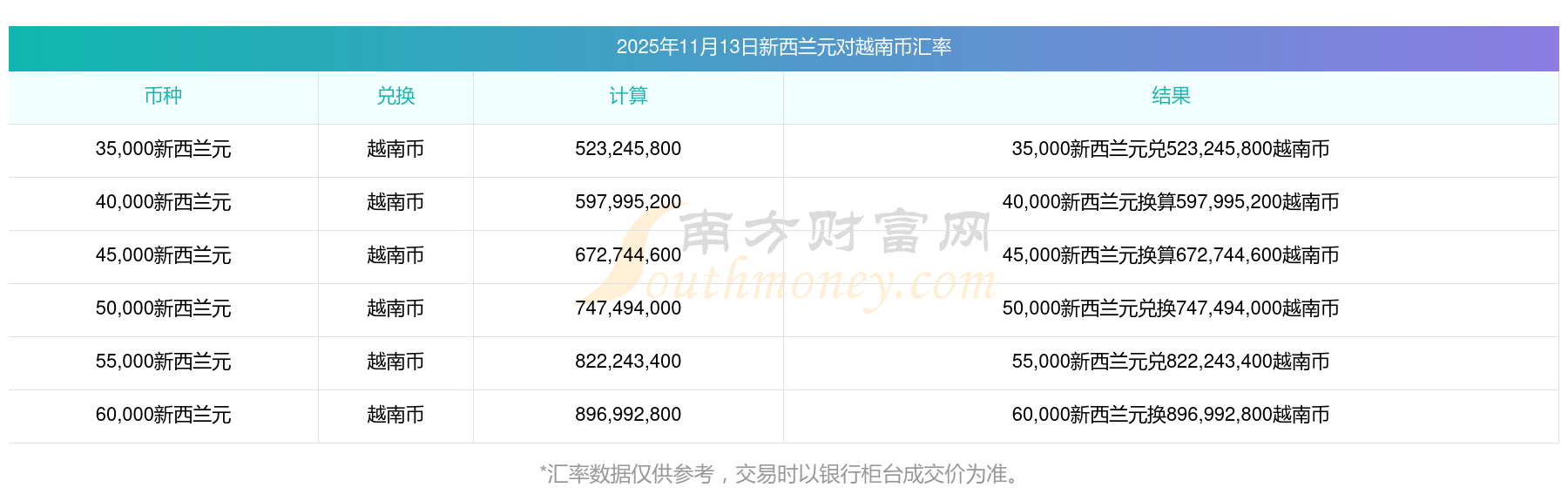 今天16兌換 | 將新西蘭元轉(zhuǎn)換為越南幣是多少? 2025年11月13日