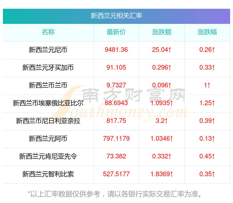 2025年11月15日新西蘭元相關(guān)匯率查詢