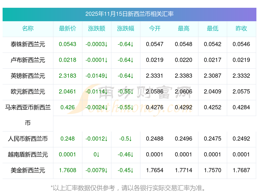 2025年11月15日新西蘭幣相關(guān)匯率查詢