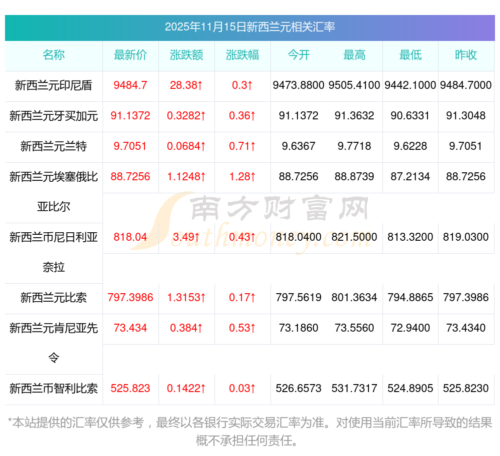 2025年11月15日新西蘭元相關(guān)匯率查詢