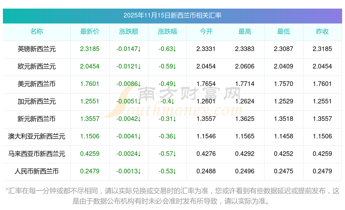 2025年11月15日新西蘭幣相關(guān)匯率查詢