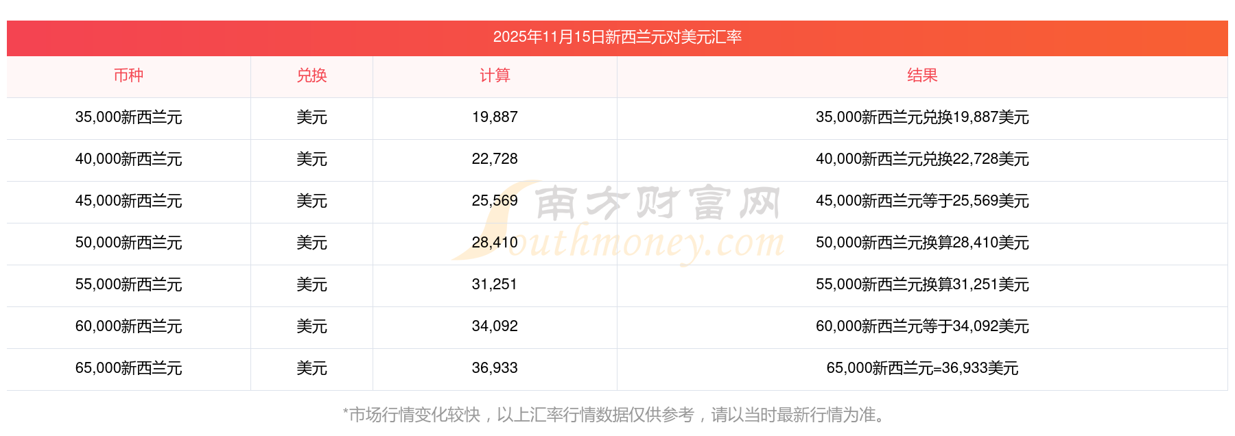 2025年11月15日匯率行情:17新西蘭元對(duì)美元匯率多少