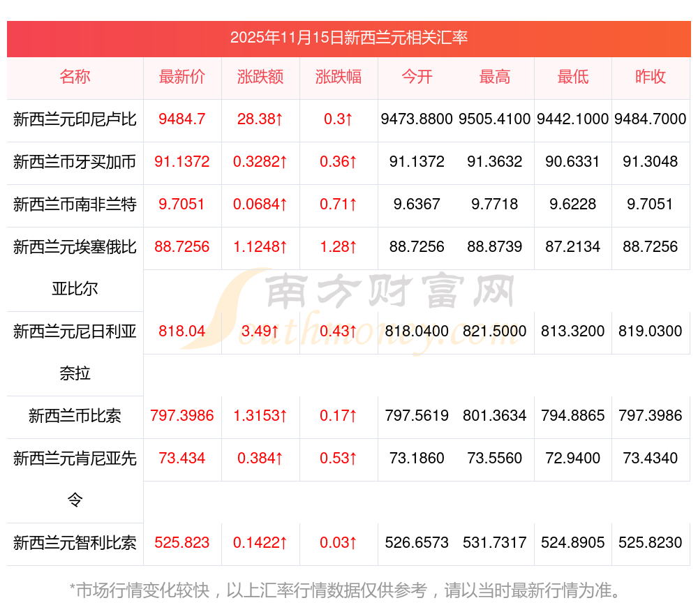 2025年11月15日新西蘭元相關(guān)匯率查詢