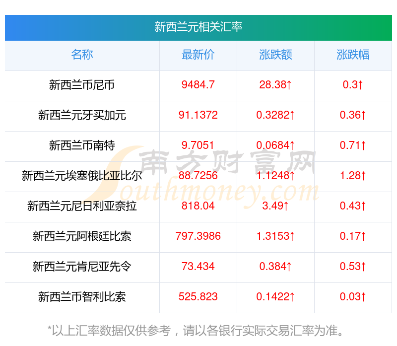 2025年11月15日新西蘭元相關(guān)匯率查詢