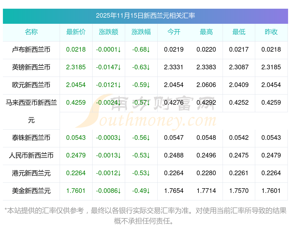 根據2025年11月15日匯率計算,NZD兌換CZK匯率最新價11.819300:今日開價11.8193,昨日收價11.8193,最高價11.8487,最低價11.7332。