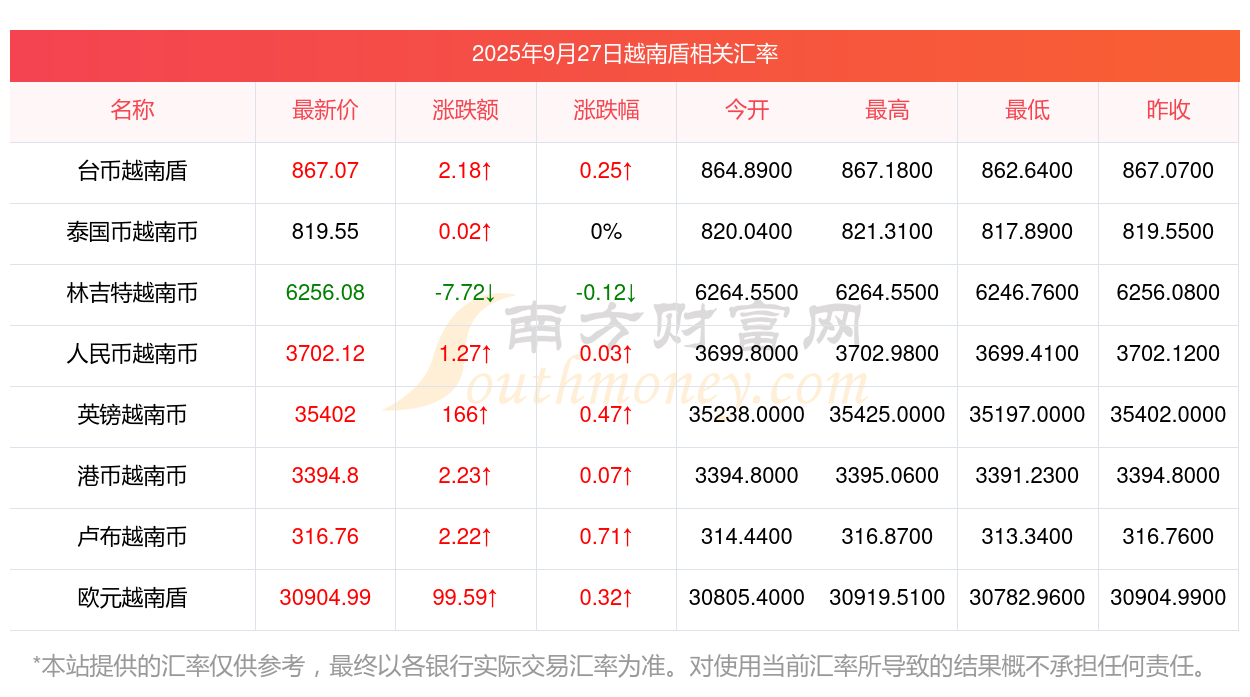 2025年9月27日越南盾對(duì)波蘭茲羅提匯率行情