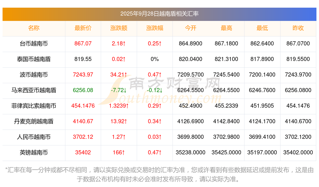 2025年9月28日越南盾相關(guān)匯率查詢(xún)