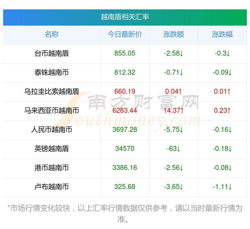 2025年11月1日越南盾相關(guān)匯率查詢