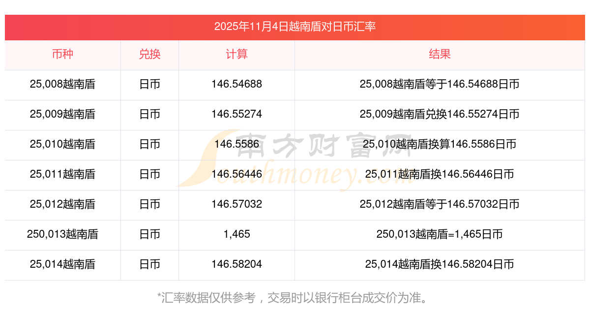 匯率查詢(xún) | 6萬(wàn)越南盾轉(zhuǎn)換日幣匯率是多少? 2025-11-4