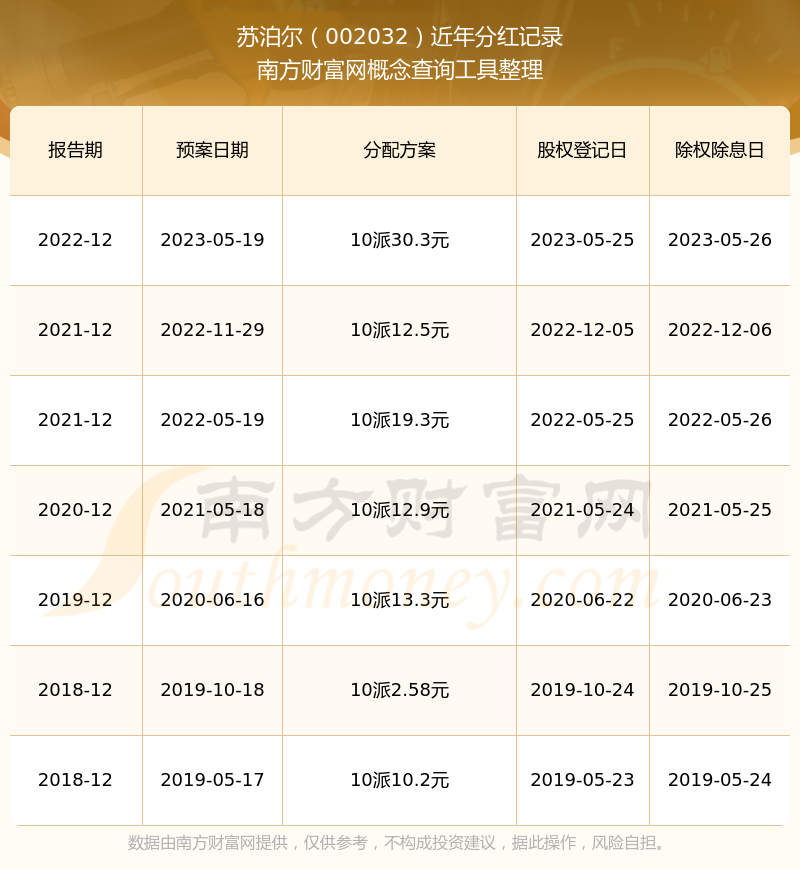蘇泊爾最新一次公布的分紅方案:10派30.3元。