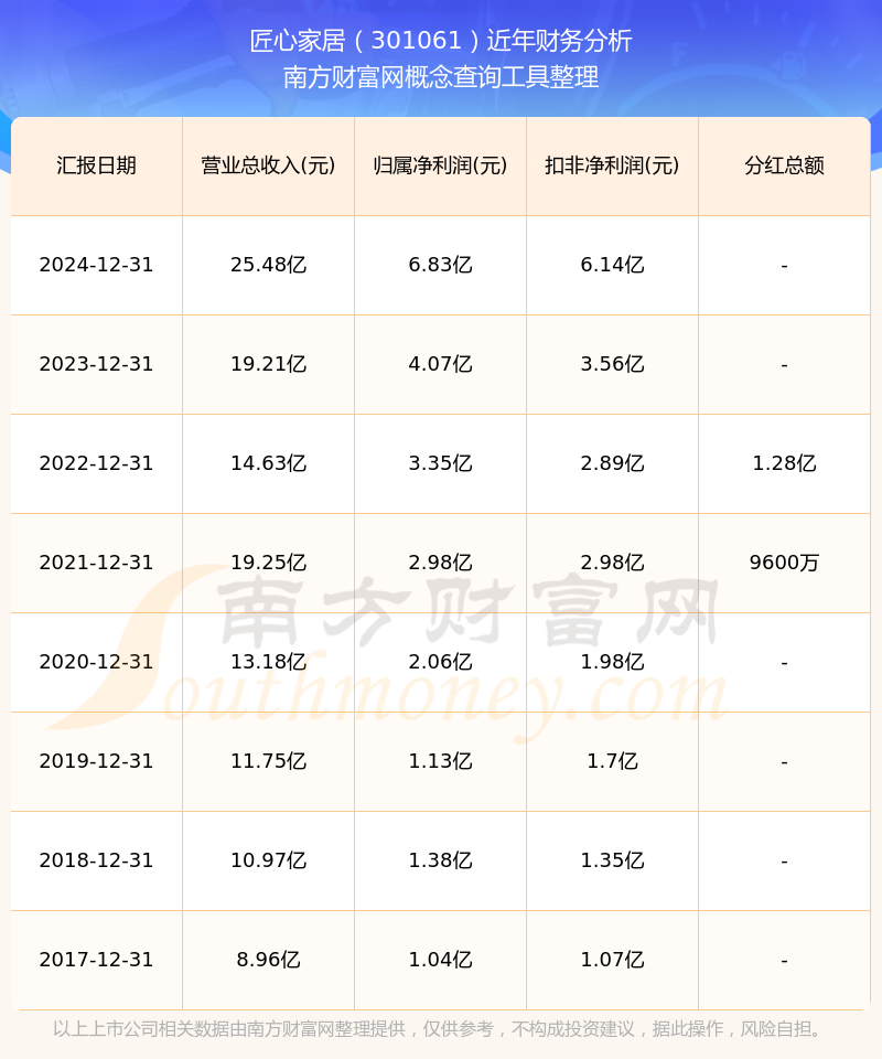 2024年報顯示,匠心家居實(shí)現(xiàn)營收25.48億,同比增長32.63%;凈利潤6.83億,同比增長67.64%;毛利率39.35%。