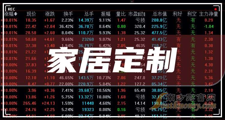 家居定制龍頭股有哪些?據(jù)南方財富網(wǎng)概念查詢工具數(shù)據(jù)顯示,家居定制龍頭股有: